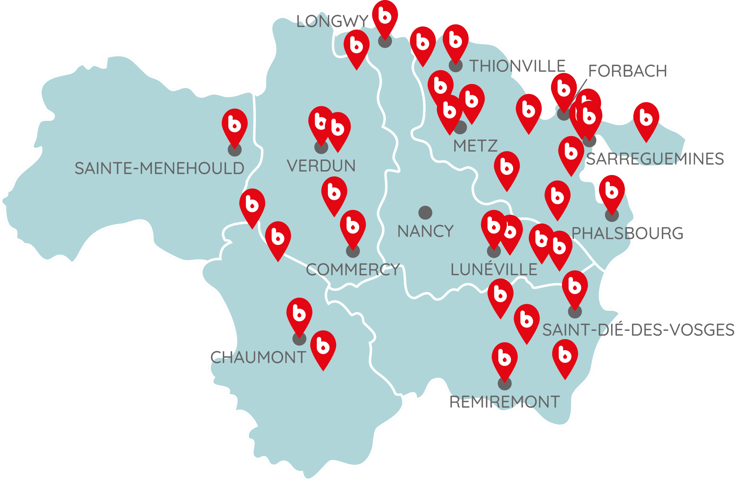 Soucieux de proposer un service de proximité à nos patients, nous assurons un solide maillage territorial en déployant plusieurs plateaux techniques d’urgence à Verdun (55), Sarreguemines(57), Thionville (57), Saint-Dié-Des Vosges (88) et Chaumont (52).